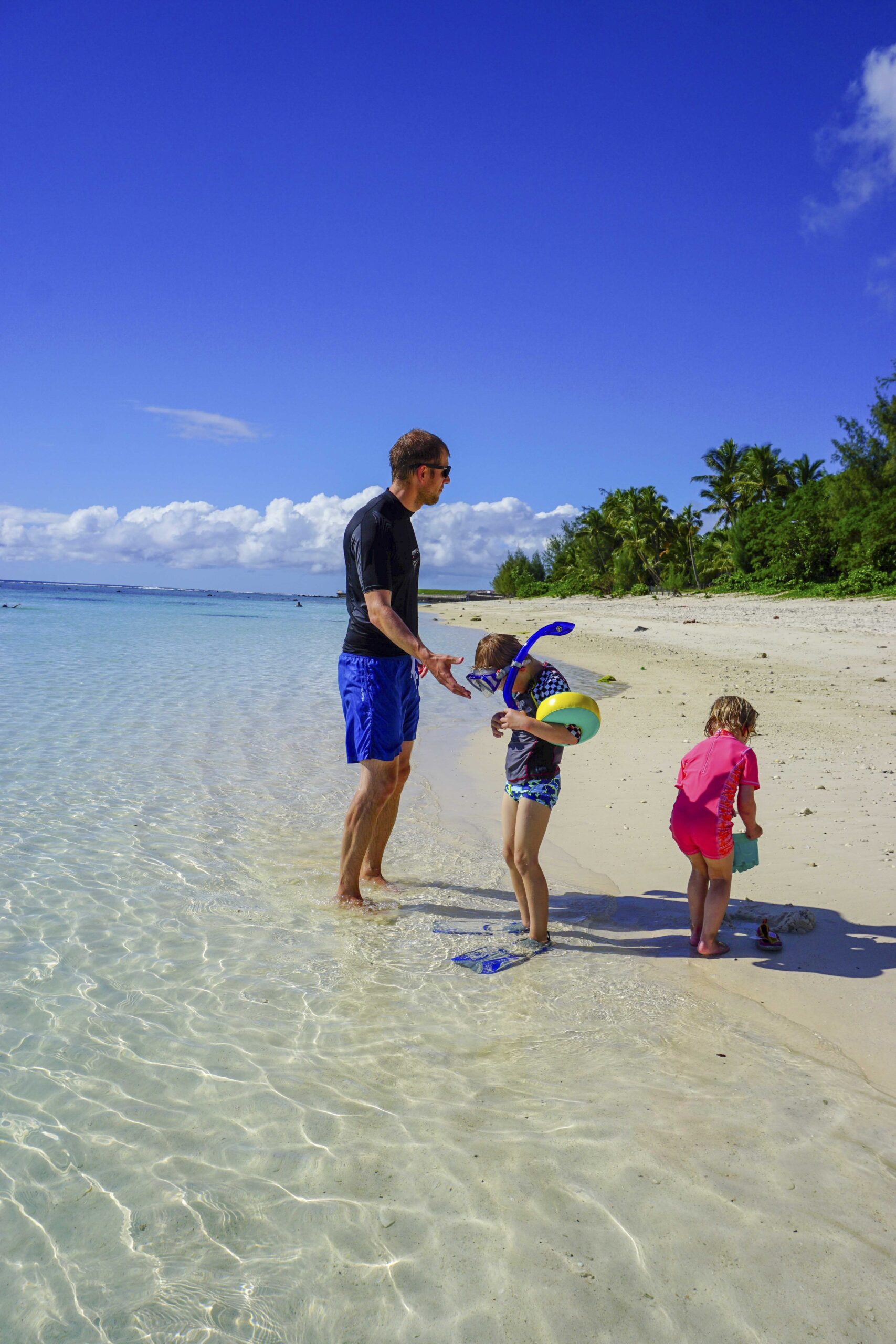 Auf Aitutaki wollten wir unbedingt einen Schnorchelausflug mit Besuch von One Foot Island machen. Auch hier gibt es viele Anbieter. “Mama” hat uns dann aber Captain Puna mit seinem gelben Boot empfohlen. Die Kinder hatten riesigen Spass beim Schnorcheln. Vor dem Mittagessen gab es den obligaten One-Foot-Island-Stempel in den Pass (gegen eine kleine Gebühr). Wer will kann sich auch überteuerte Postkarten und Getränke kaufen. (8ung: Bei Captain Puna ist nur Barzahlung möglich. Der Bus steuert aber normalerweise einen Bankomaten an).