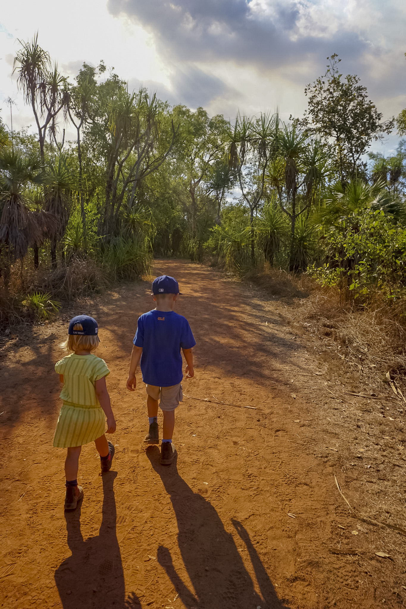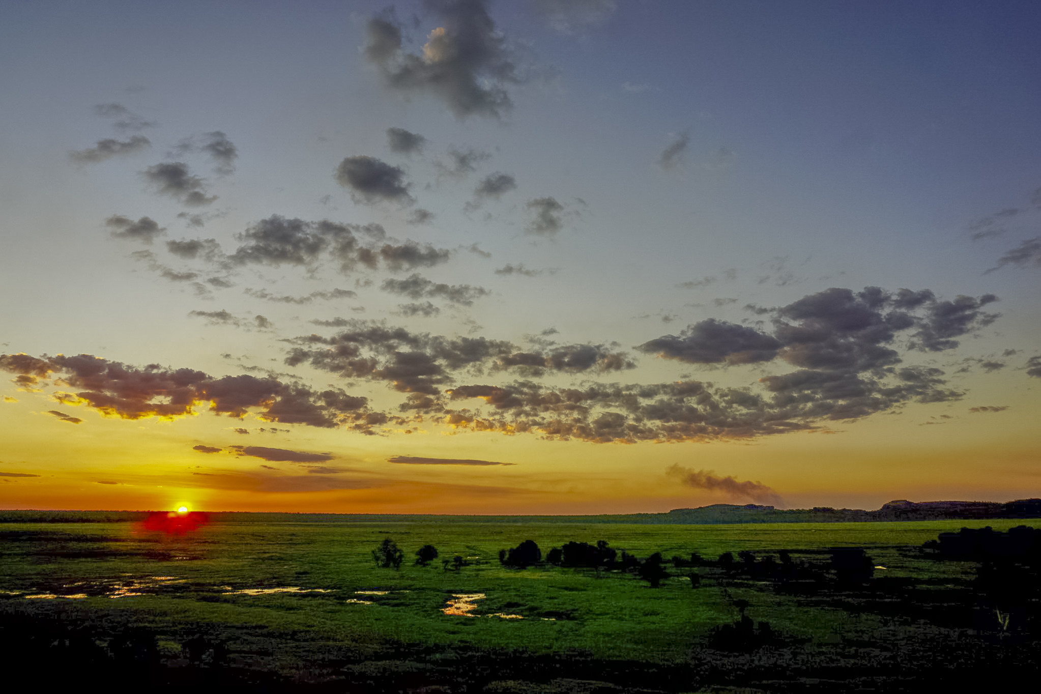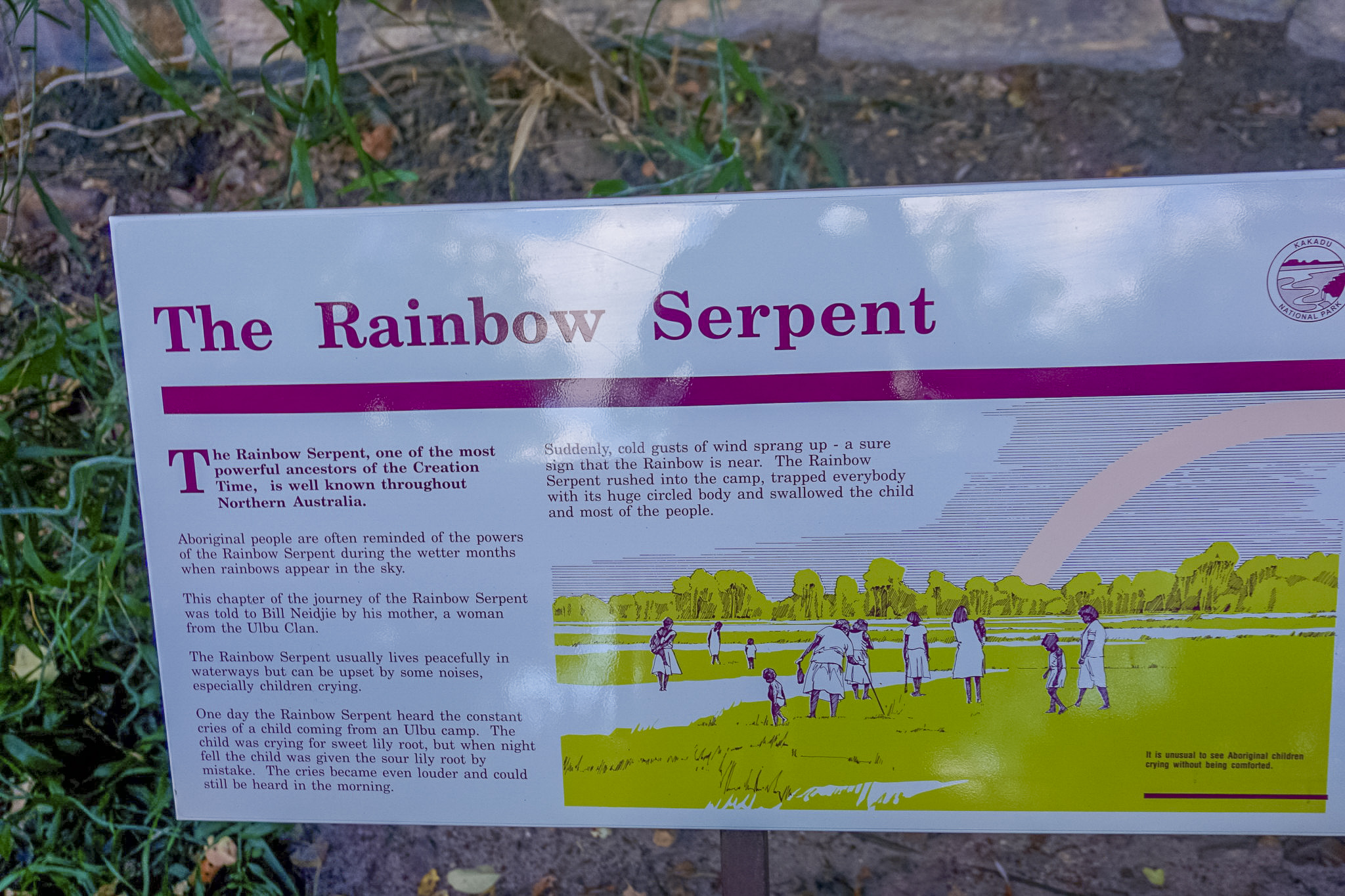 Via Batchelor und Noonamah fahren wir zum nördlichen Eingang des Kakadu National Park. Im Kakadu National Park benötigt man einen Eintritts-Pass (AU$ 65/Familie). Dieser gibts bei beiden Einfahrten in den Park, im Visitor Center und online zu kaufen. Wunderschöne Felsmalereien und Geschichten der Aboriginals gibt es auf dem Rundweg in Ubirr zu erkunden. Wer den Rundgang am späten Nachmittag unter die Füsse nimmt, bestaunt den einmaligen Sonnenuntergang vom Nadab Lookout