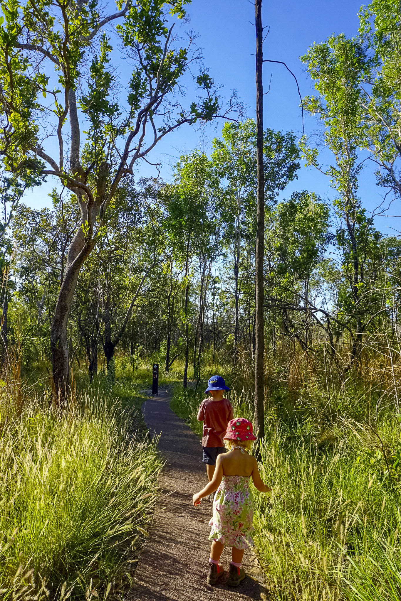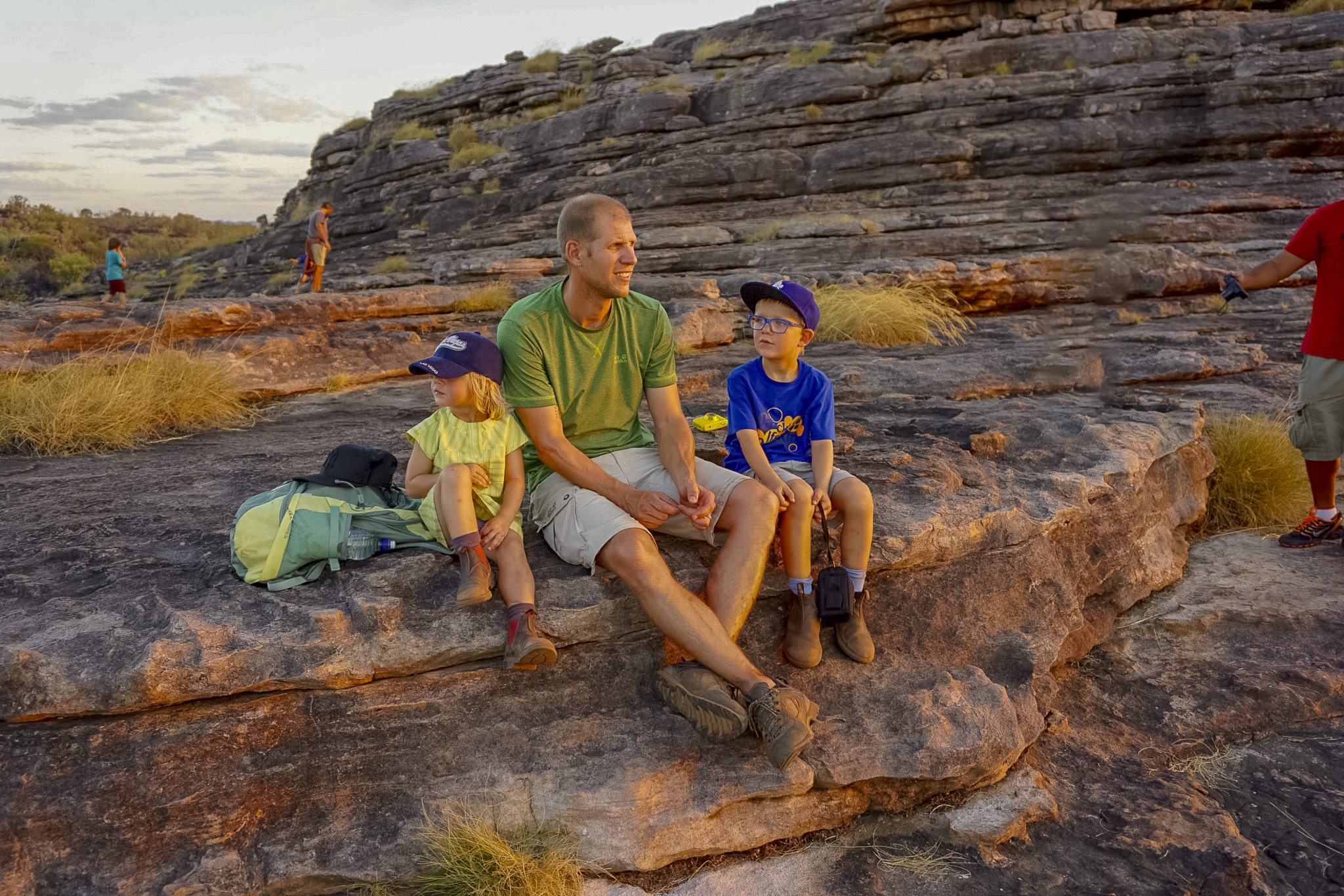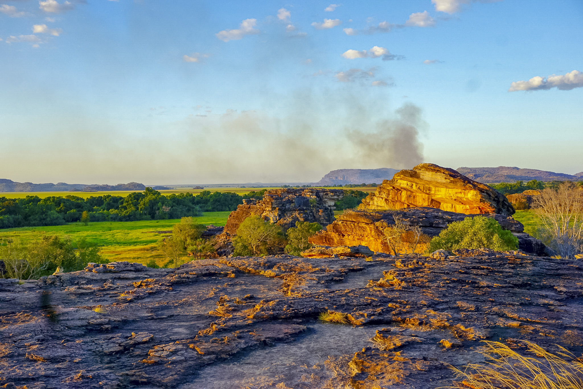 Via Batchelor und Noonamah fahren wir zum nördlichen Eingang des Kakadu National Park. Im Kakadu National Park benötigt man einen Eintritts-Pass (AU$ 65/Familie). Dieser gibts bei beiden Einfahrten in den Park, im Visitor Center und online zu kaufen. Wunderschöne Felsmalereien und Geschichten der Aboriginals gibt es auf dem Rundweg in Ubirr zu erkunden. Wer den Rundgang am späten Nachmittag unter die Füsse nimmt, bestaunt den einmaligen Sonnenuntergang vom Nadab Lookout