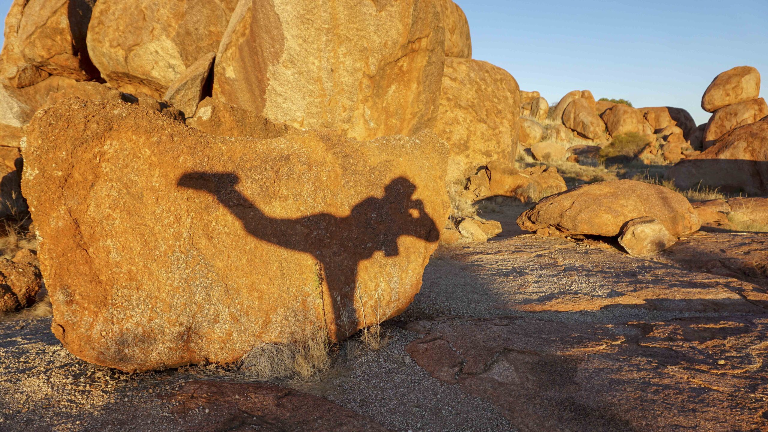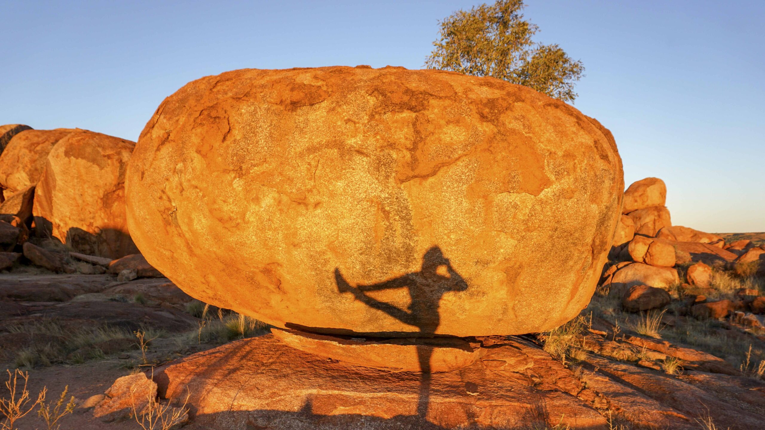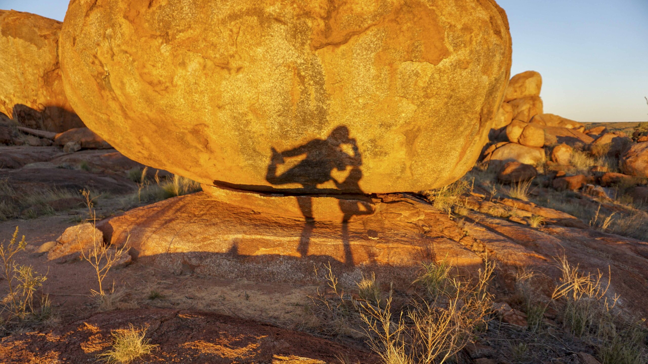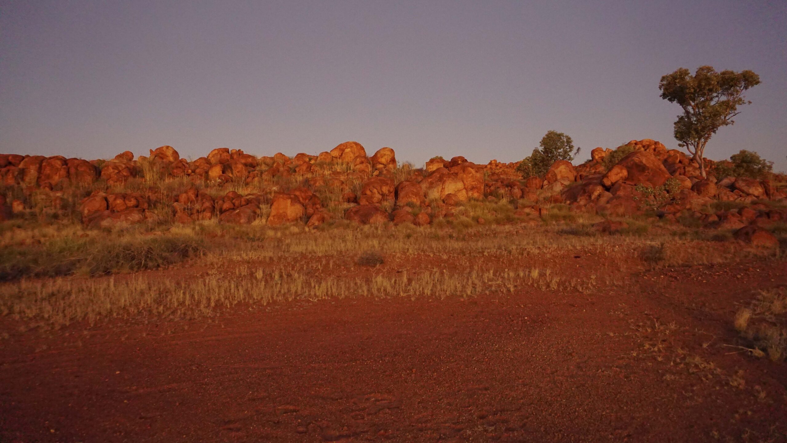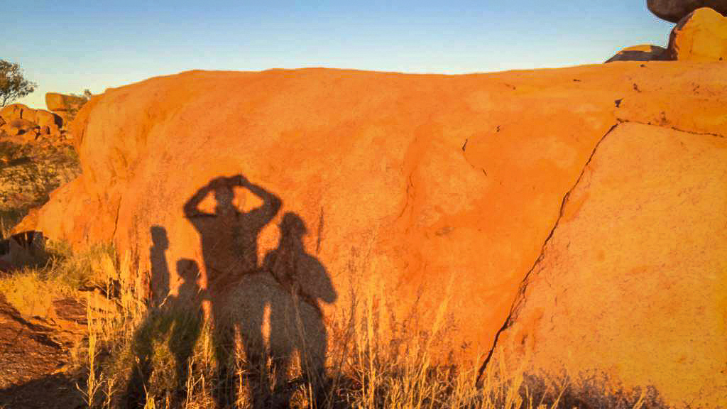 Der Sonnenuntergang bei den Devils Marbles ist wunderschön und lädt zu Schattenspielen an den riesigen Murmeln ein. Karlu Karlu ist für die Ureinwohner heilig, weshalb man NICHT auf die Felsen klettern sollte.