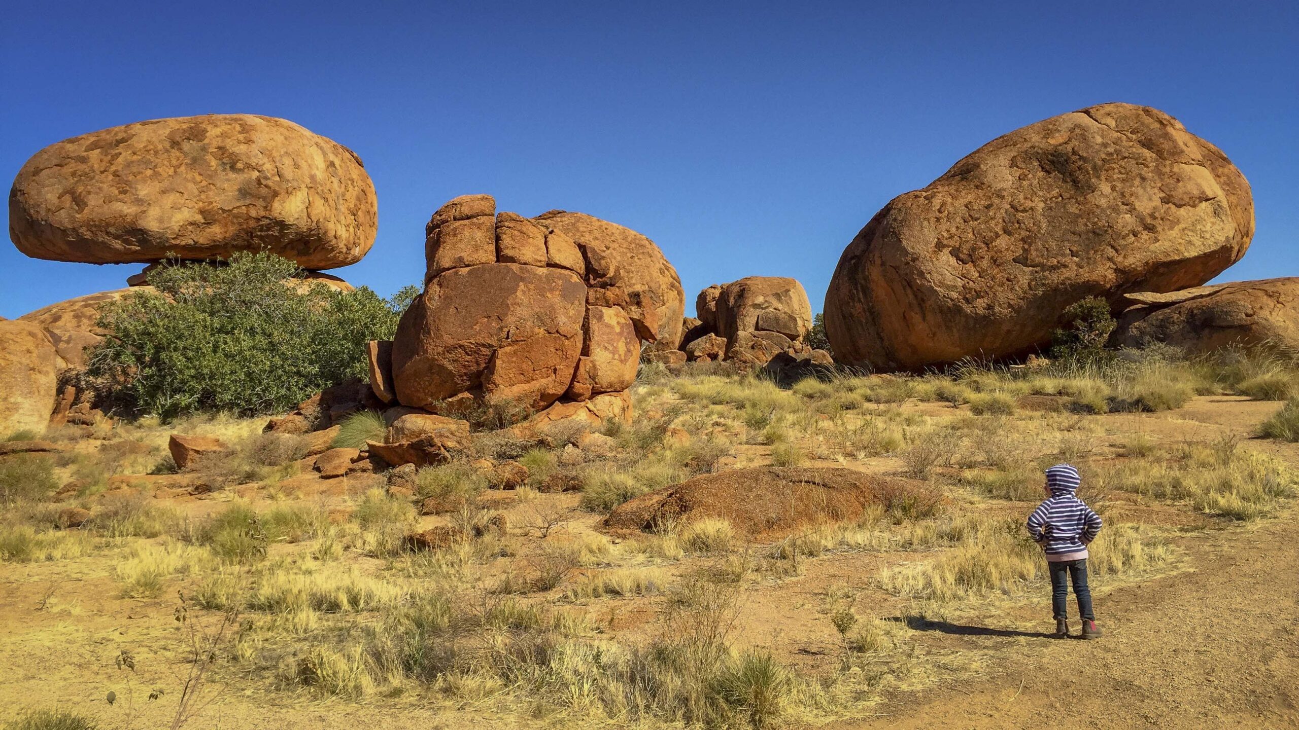 Übernachtung: Devils Marbles Conservation Reserve, unpowered Site ab AU$ 7.50/Nacht, keine Duschen – Vorausbuchung erforderlich!