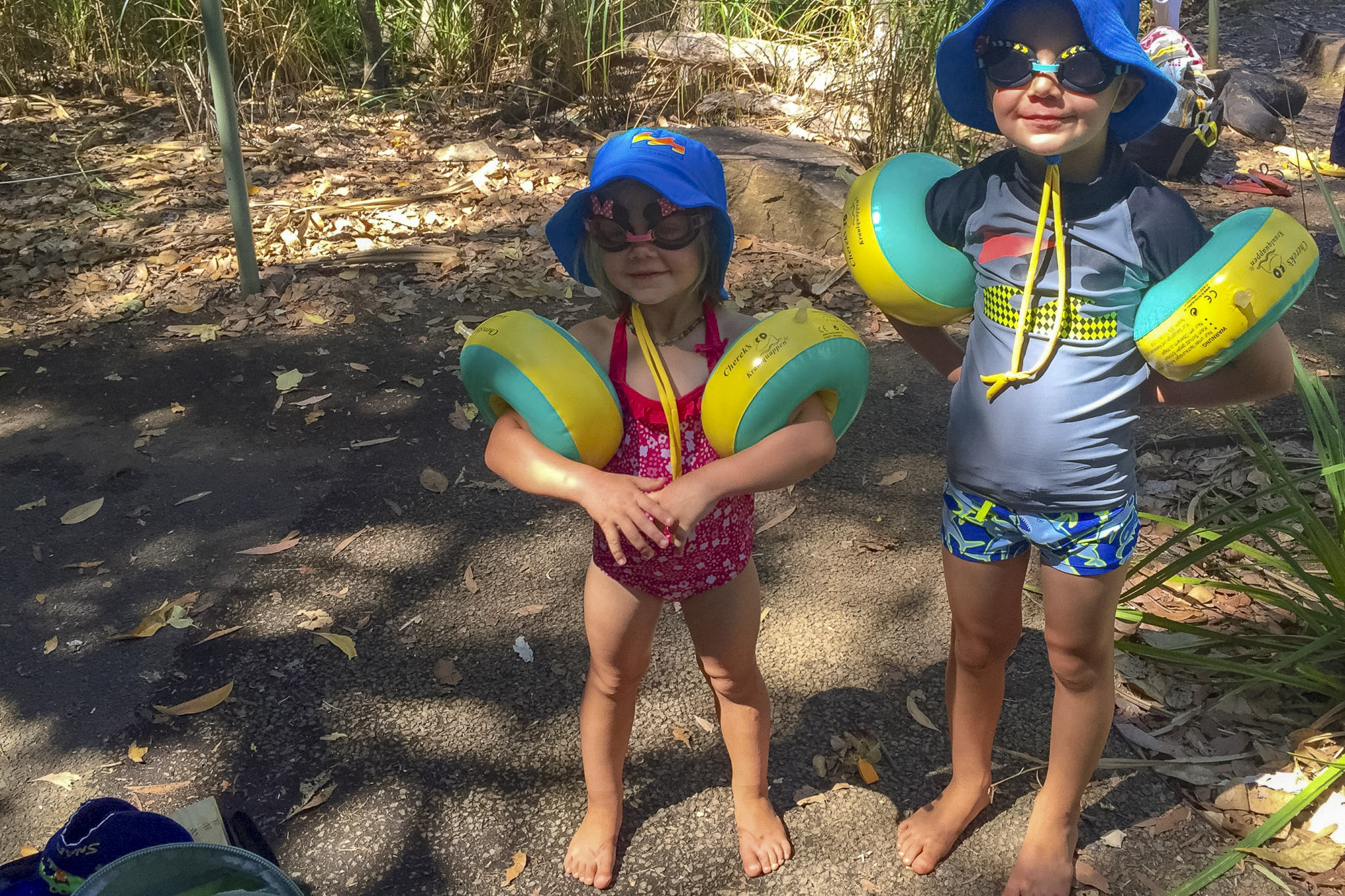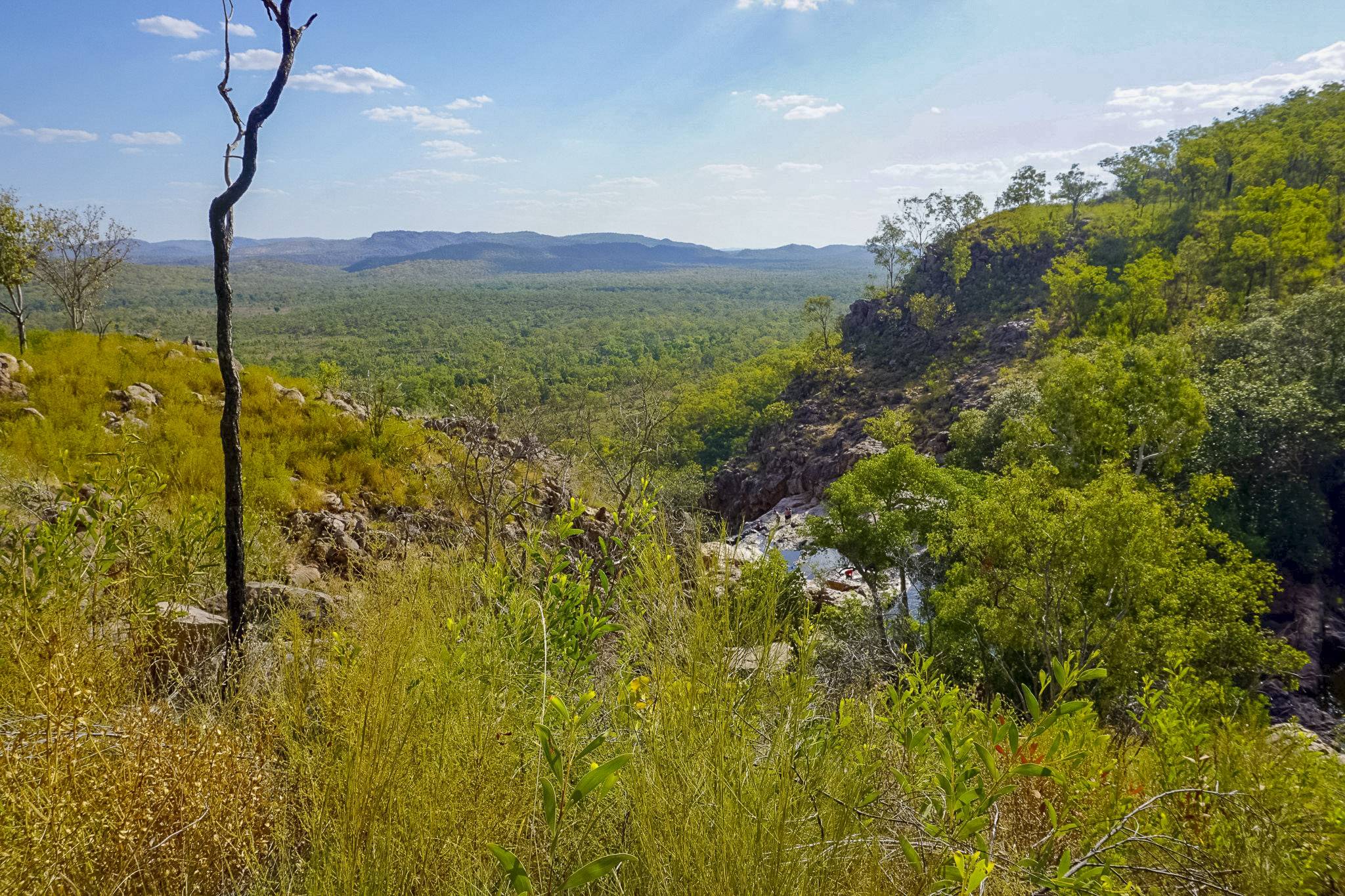 Nachdem Frühstück bleibt noch genügend Zeit, um zu den Gunlom Falls zu fahren und die kurze aber steile Wanderung (felsig, gute Schuhe zwingend) unter die Füsse zu nehmen. Einmal oben angekommen kann man in den Pools vor dem Wasserfall baden und die unglaubliche Aussicht über den ganzen Park geniessen.