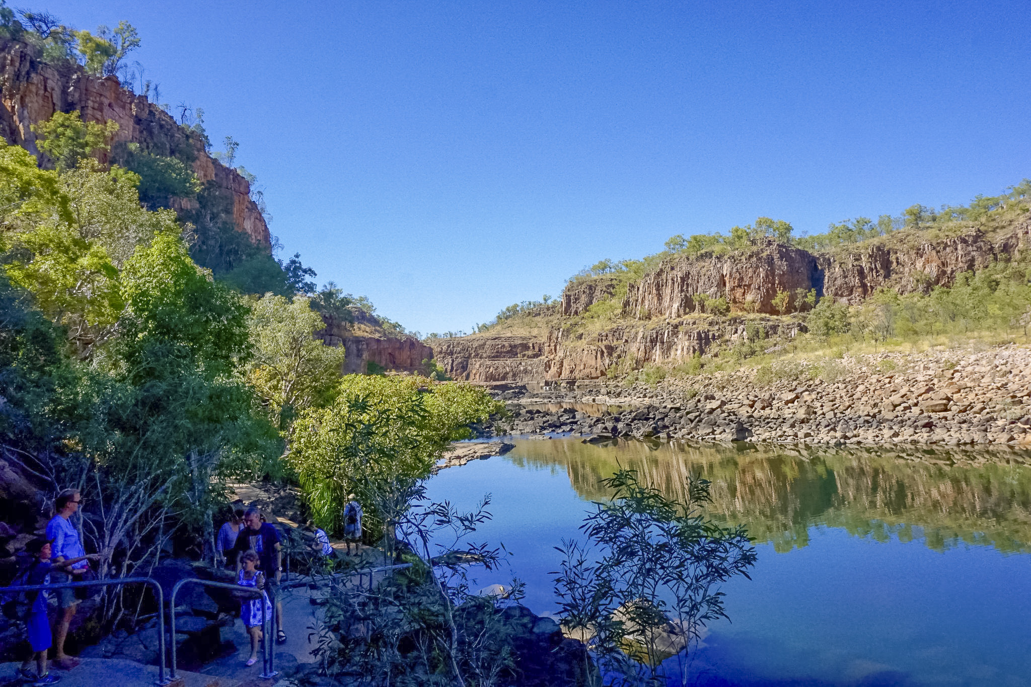 Die Nitmiluk Schlucht ist zwar schön und sie lässt sich auf vielen Wanderwegen weiter erkunden, wir fanden die Edith Falls etwas weiter nördlich jedoch schöner. Ausserdem kann man dort baden.