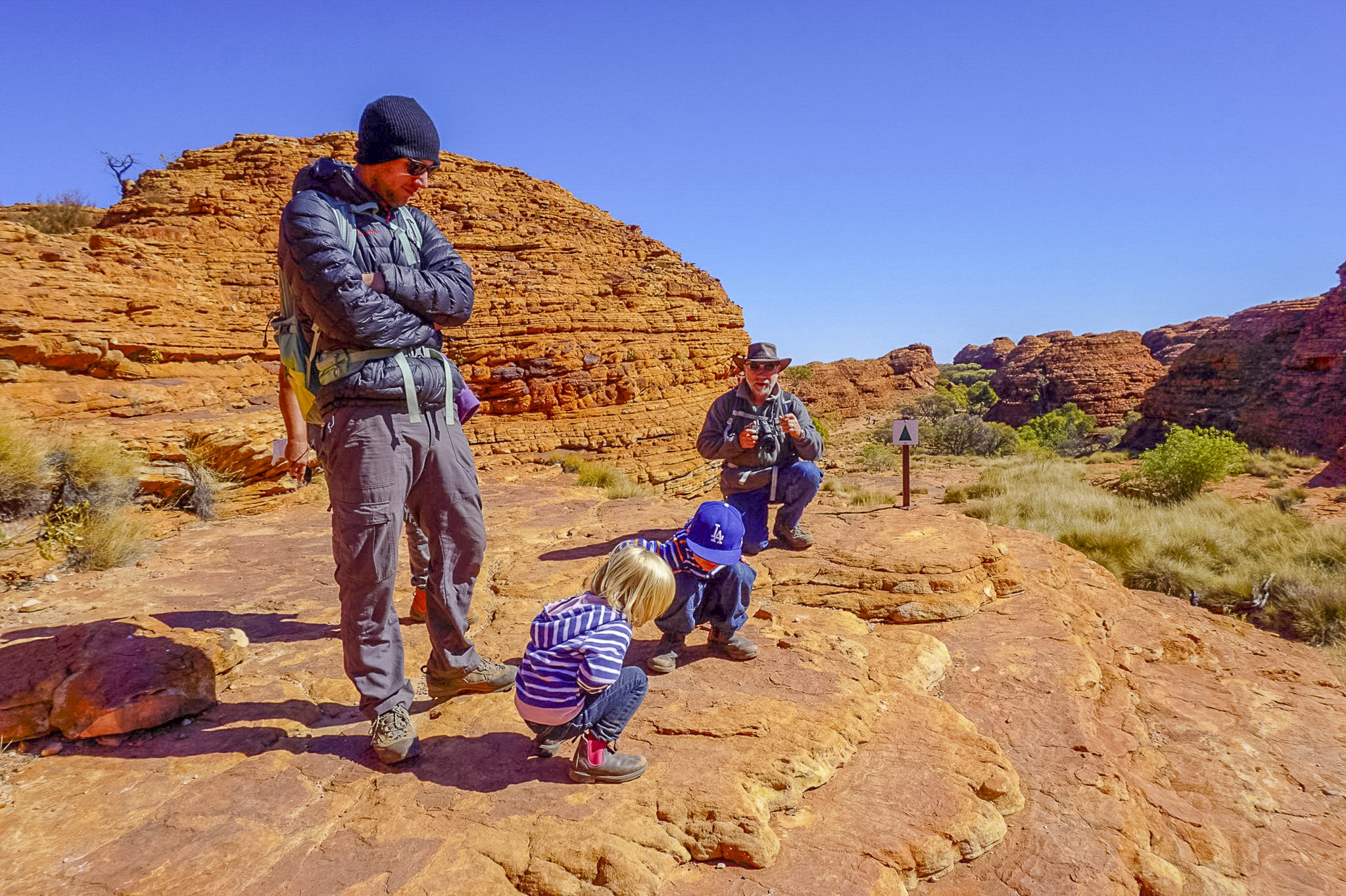 Nun geht es in die Touristenhochburg des Zentrums. Im Ayers Rock Resort findet man Hotels, Restaurants, einen Campingplatz, diverse Souvenirläden, eine Tankstelle, Bank, Post und ein medizinisches Zentrum. Die verschiedenen Touren buchst du am besten im Tours & Information Centre. Wir haben mit den Kindern am dot-painting-Workshop teilgenommen. Auf die Kameltour mussten wir leider verzichten (Nur für Kinder ab 5 Jahren).