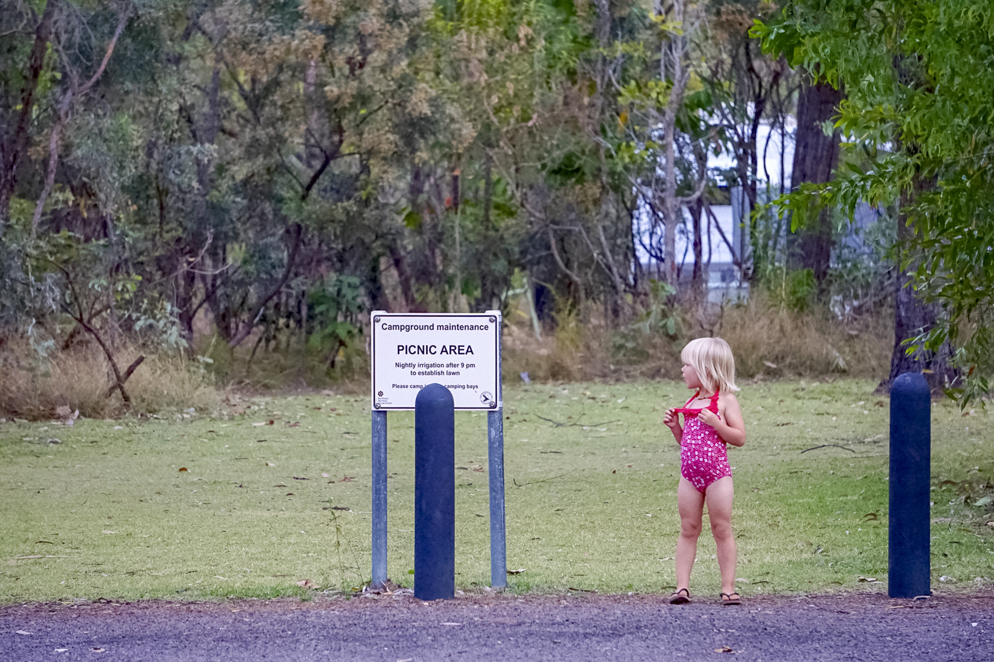 Übernachtung: Wangi Falls Campground, Unpowered Site ab AU$ 15.40/Familie, Duschen vorhanden. First come, first serve und somit entsprechend früh voll.