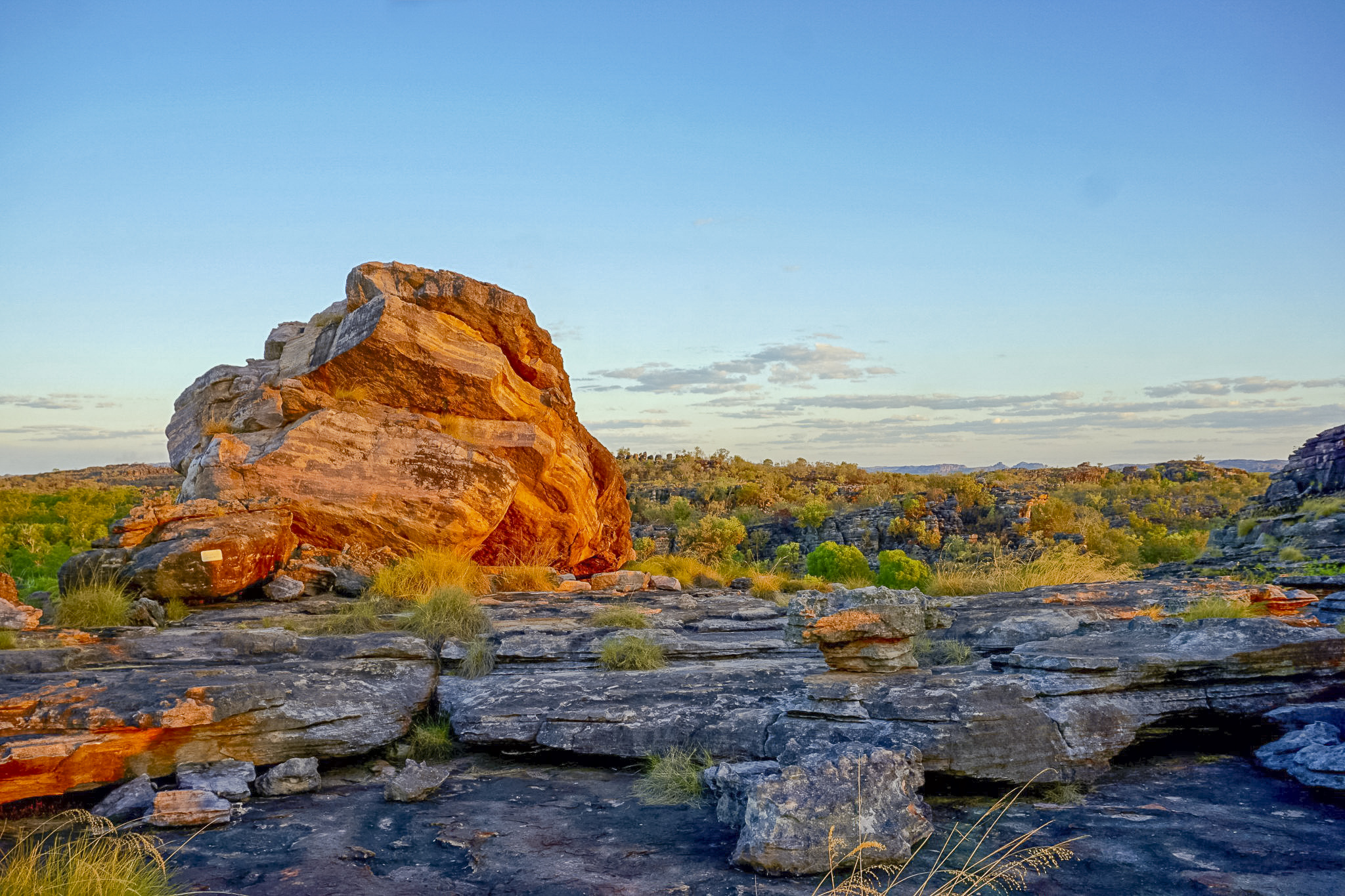 Via Batchelor und Noonamah fahren wir zum nördlichen Eingang des Kakadu National Park. Im Kakadu National Park benötigt man einen Eintritts-Pass (AU$ 65/Familie). Dieser gibts bei beiden Einfahrten in den Park, im Visitor Center und online zu kaufen. Wunderschöne Felsmalereien und Geschichten der Aboriginals gibt es auf dem Rundweg in Ubirr zu erkunden. Wer den Rundgang am späten Nachmittag unter die Füsse nimmt, bestaunt den einmaligen Sonnenuntergang vom Nadab Lookout