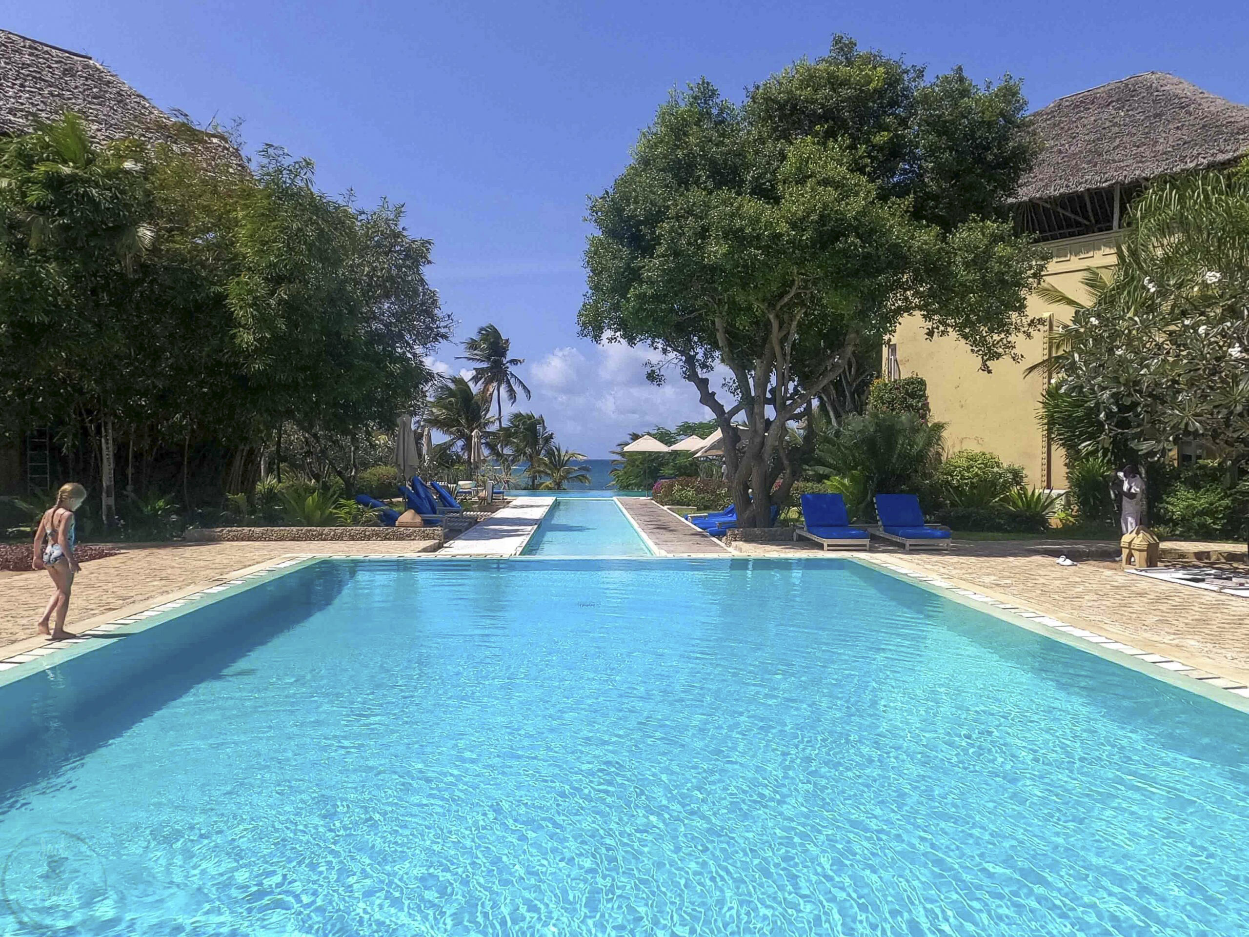 Da wir 3 Wochen Ferien geplant hatten, wollten wir die Safari mit ein paar Tagen am Strand ergänzen. Besonders bekannt ist dafür der Diani Beach. Die meisten Hotels waren hier aber bereits ausgebucht oder kaum noch zu bezahlen. Wir entschieden uns deshalb für ein Hotel nördlich von Mombasa, in Watamu. Im Medina Palms erholten wir uns während 5 Tagen von den Strapazen der Safari und holten Schlaf nach. Watamu ist bei Kite-Surfern beliebt, entsprechend stark war der Wellengang auf dem Meer. Während unserem Aufenthalt wurde auch sehr viel Seegras angespült, weshalb wir uns auf das Bad im Pool beschränkten.