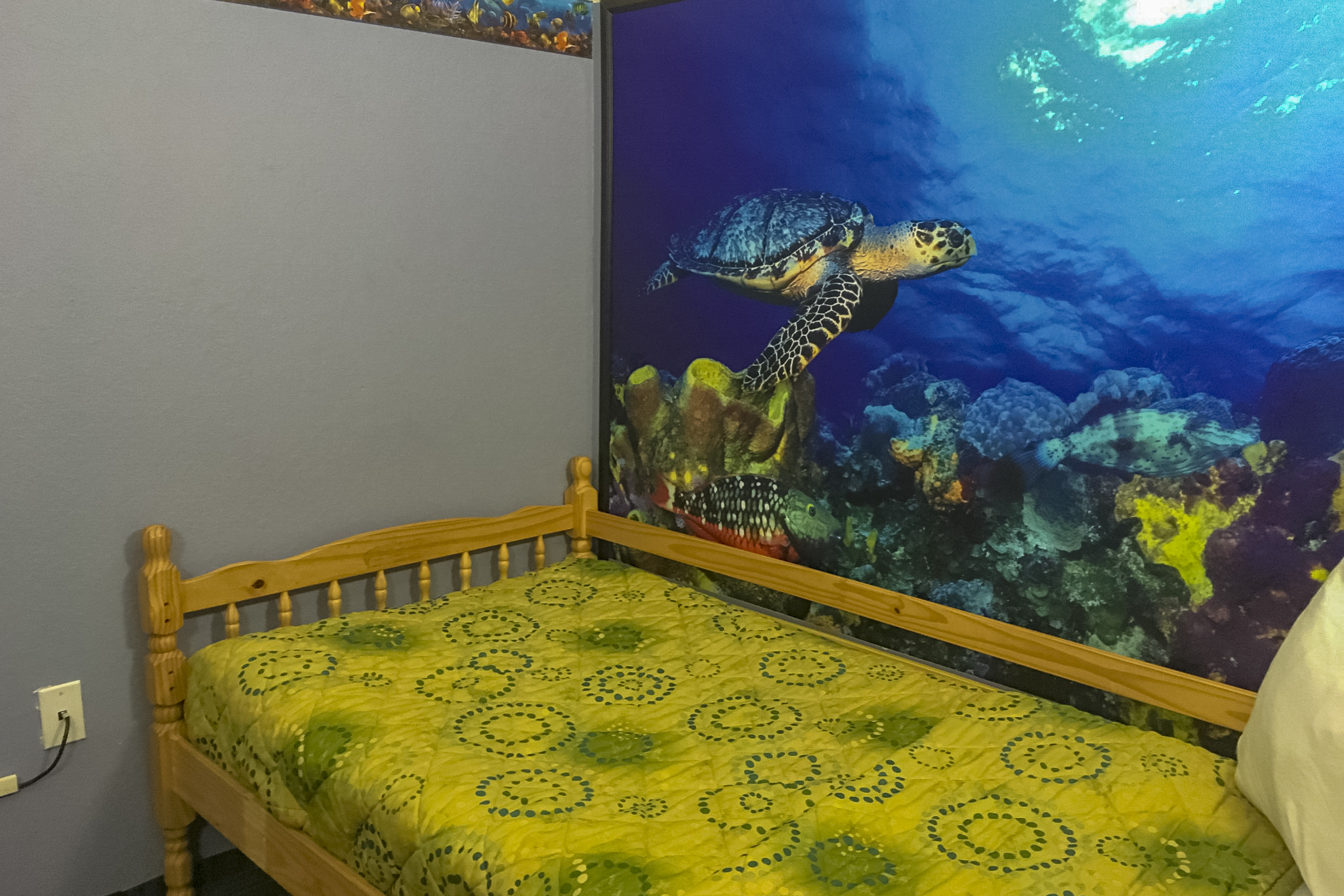 Übernachtung: Country Inn & Suites by Carlson Port  Canaveral – US 334/ 2 Nächte – Frühstück & Parking inbegriffen, Mikrowelle & Kühlschrank vorhanden (Wir hatten auf ein Astronauten Zimmer gehofft, aber die Kinder fanden auch das Zimmer mit der Schildkröte toll).