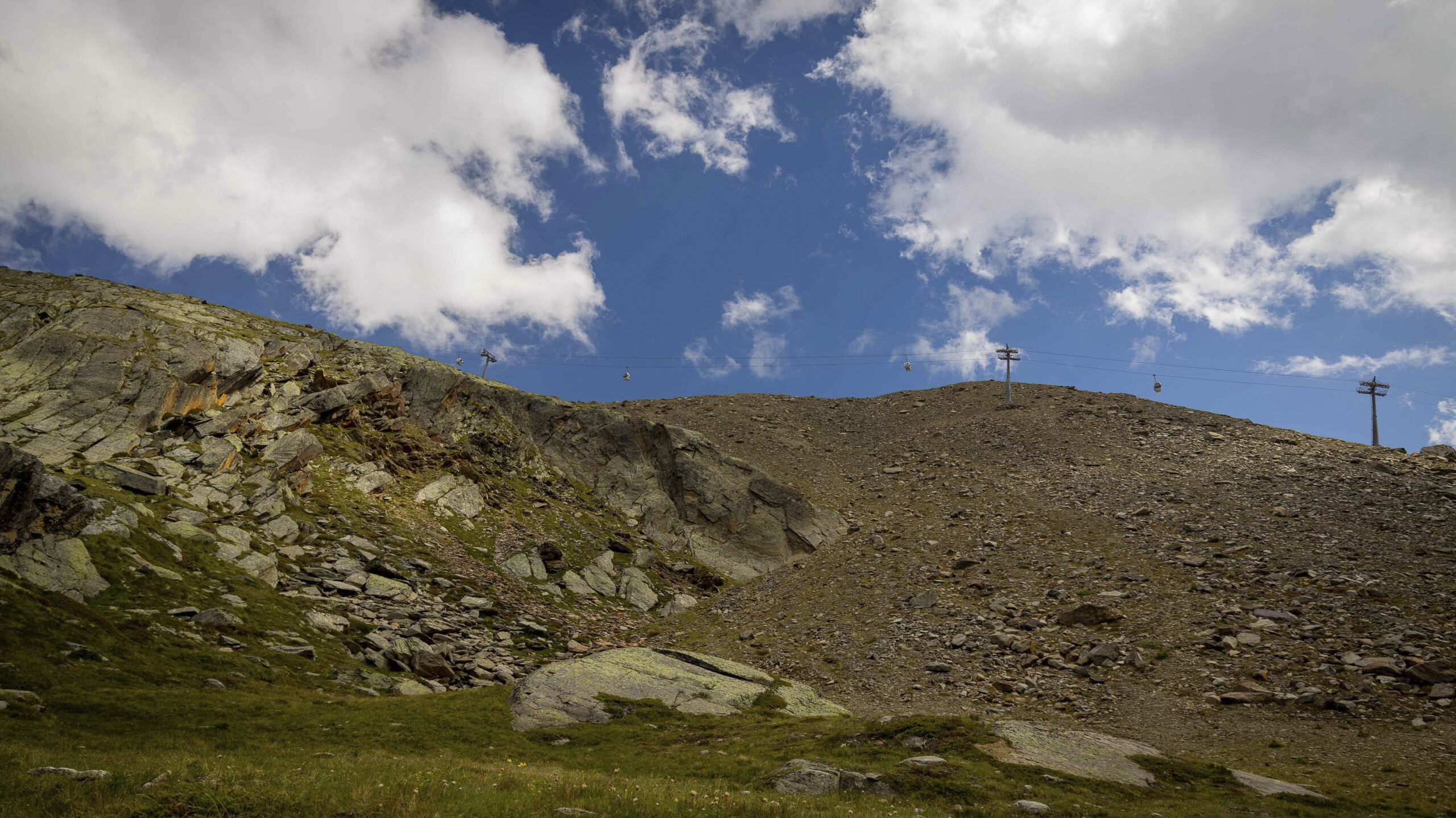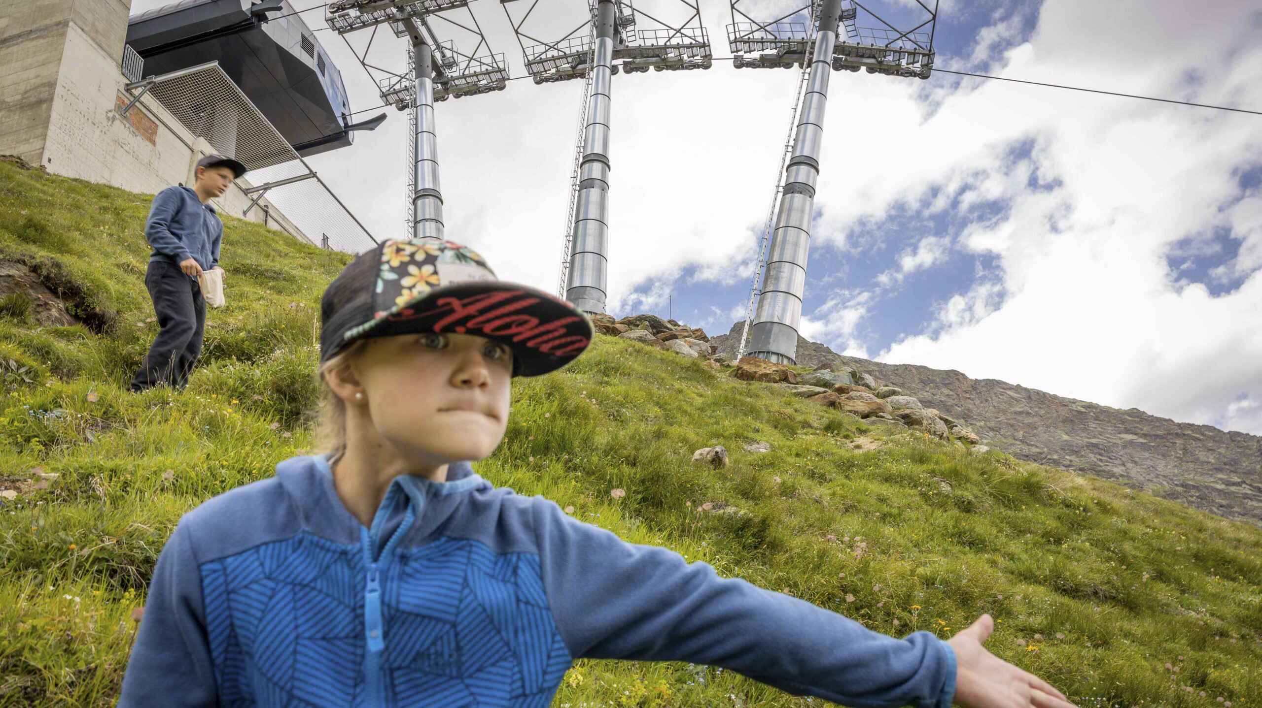 Nachdem wir mit der Metro und der Gondelbahn zurückgefahren sind, stiegen wir direkt auf die Gondelbahn auf den Spielboden um. Eigentlich wollten wir dort noch etwas essen, die dunkler werdenden Wolken am Himmel hielten uns jedoch davon ab und wir machten uns direkt auf die Suche nach den Murmeli. Entlang des Murmeliweg erfährt man an sieben Tafeln viel zum Leben der Murmeltiere.