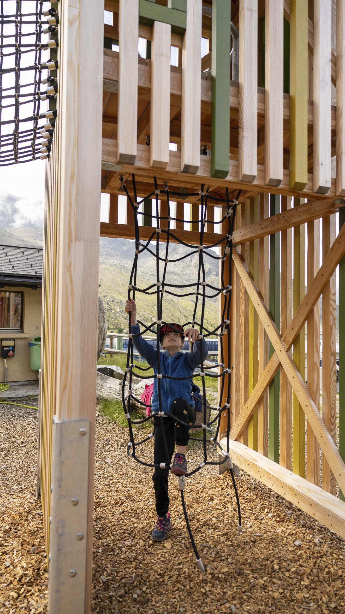 Kinder ab 4 Jahren können ihre Kletter-Skills im Kinder-Parcours testen. Dieser hat 10 Elemente und eine Tyrolienne.