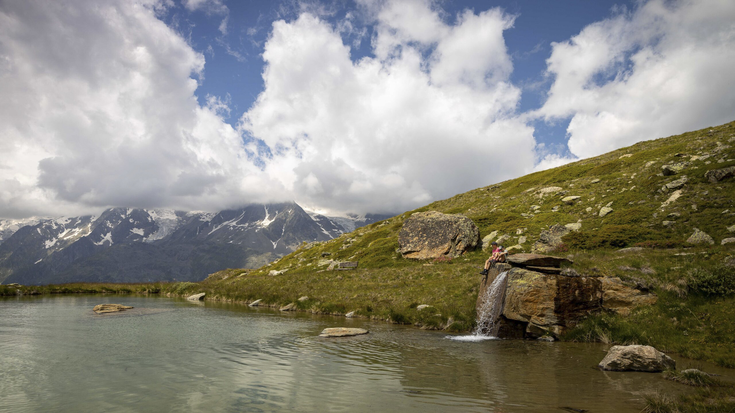 «Zmorge» gibt’s in der Hütte nur bis 7:30 Uhr. Ausschlafen war also nicht angesagt. Anschliessend ans Frühstück rollten wir unsere Schlafsäcke wieder zusammen und sind zum Kreuzboden abgestiegen, wo wir die fehlende Dusche auf der Weissmieshütte mit einem Bad im kalten See nachgeholt haben.