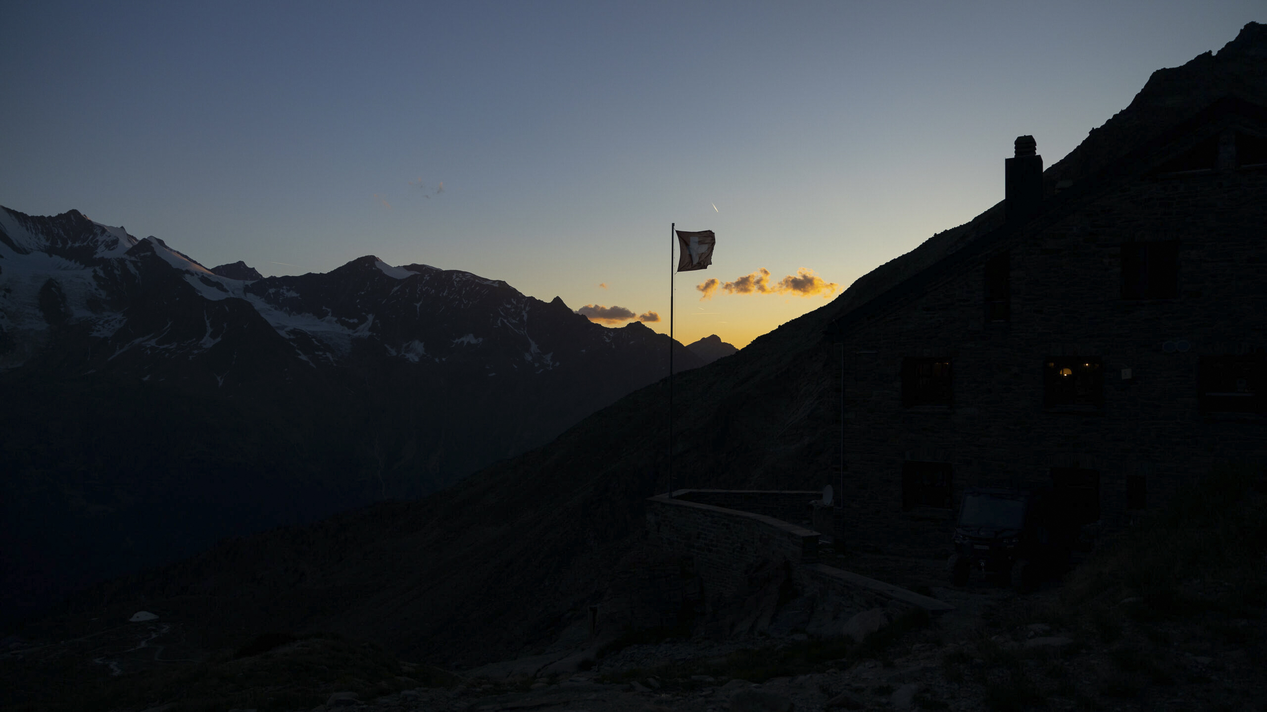 Die Weissmieshütte liegt auf 2726 Meter über Meer und gehört der Sektion Olten des Schweizer Alpen-Club SAC. Kurz nachdem wir unser Zimmer in der ursprünglichen Hütte von 1894 bezogen hatten, stand bereits das Nachtessen auf dem Programm. Lichterlöschen ist spätestens um 22.00 Uhr erwünscht. Da viele der Touren bereits um 4:00 Uhr oder sogar noch früher starten, zieht es viele der Gäste aber schon früher ins Bett.