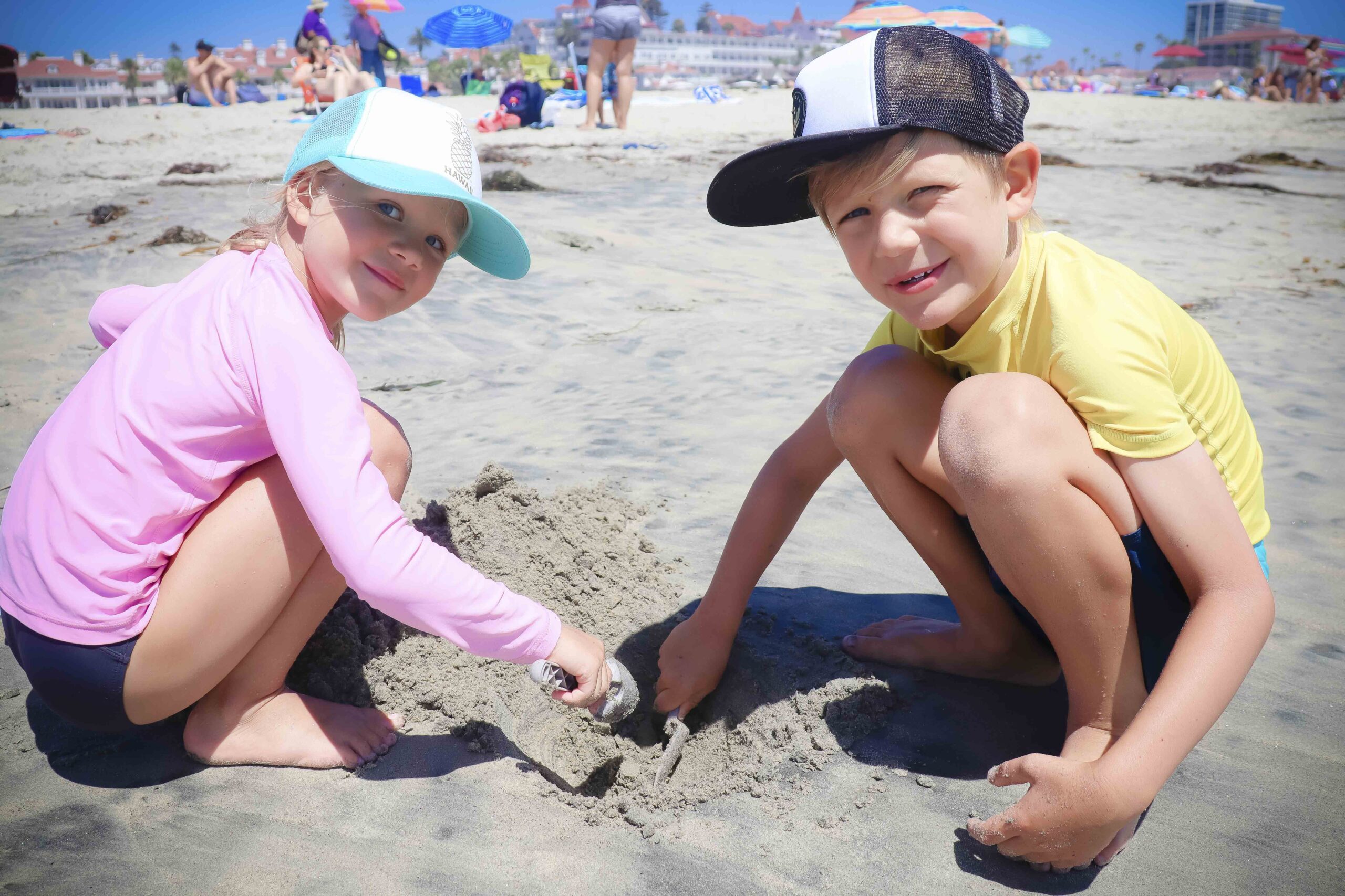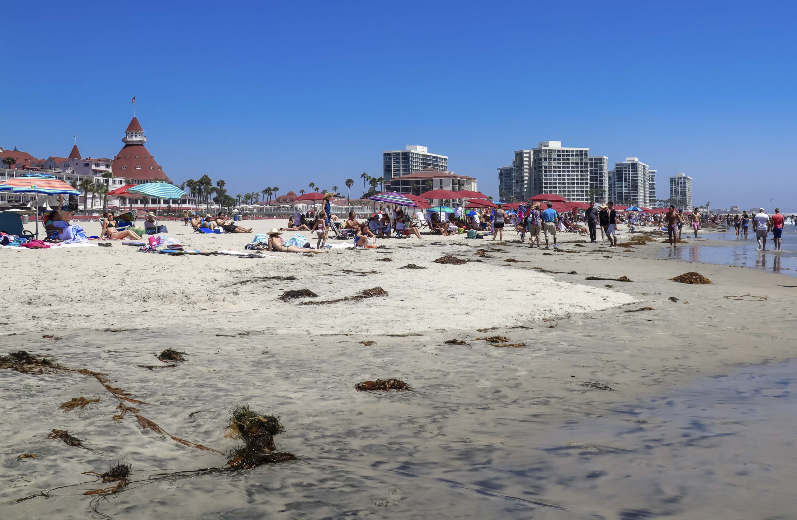Unsere Wahl fiel auf den Coronado Beach und ehrlich gesagt, waren wir etwas enttäuscht. Das Wasser war eher braun als blau und es hatte sehr viel Seegras und Algen. Dazu kam die unglaubliche Anzahl an Menschen und wir haben uns sehnlichst an die Strände auf Hawaii zurück gewünscht.