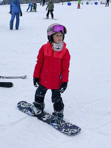 Leilah ist dieses Jahr auf das Snowboard umgestiegen. Da es nicht genügend Snowboardfahrer für eine eigene Hotelklasse gibt, nehmen diese an den regulären Kursen der örtlichen Skischule teil. Die Kurse dauern hier von 10.00 Uhr bis 12.00 Uhr und von 13.15 bis 15.15 Uhr und sind nur als Ganztageskurs zu buchen. Die Mittagspause kann mit dem Skilehrer zusammen verbracht werden. Diese Betreuung kostet zusätzlich 10 Euro/Tag.