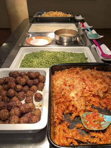Frühstücks-, Mittags- und Abendbüffets sorgen für das leibliche Wohl. Zwischen dem Mittag- und Abendessen versorgt das Nachmittagsbüffet hungrige Mäuler mit der nötigen Energie. Die Selbstbedienungs-Softeismaschine ist glücklicherweise erst ab dem Mittag in Betrieb. Was am ersten Morgen für einen traurigen Blick am Frühstückstisch sorgen kann. Für Allergiker werden sämtliche Allergene der Speisen aufgelistet. Das Hotel bereitet nach Wunsch die Speisen vom Büffet auch ohne die unverträglichen Zutaten zu, sofern dies möglich ist. Ich habe jedoch immer etwas feines, glutenfreies am Büffet gefunden.
