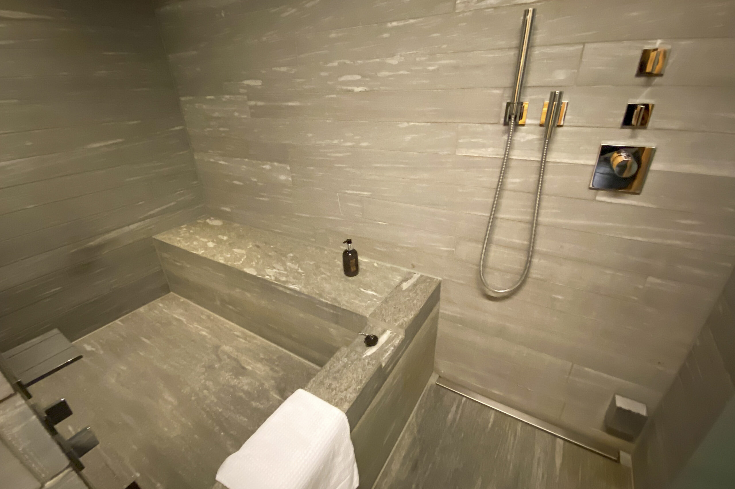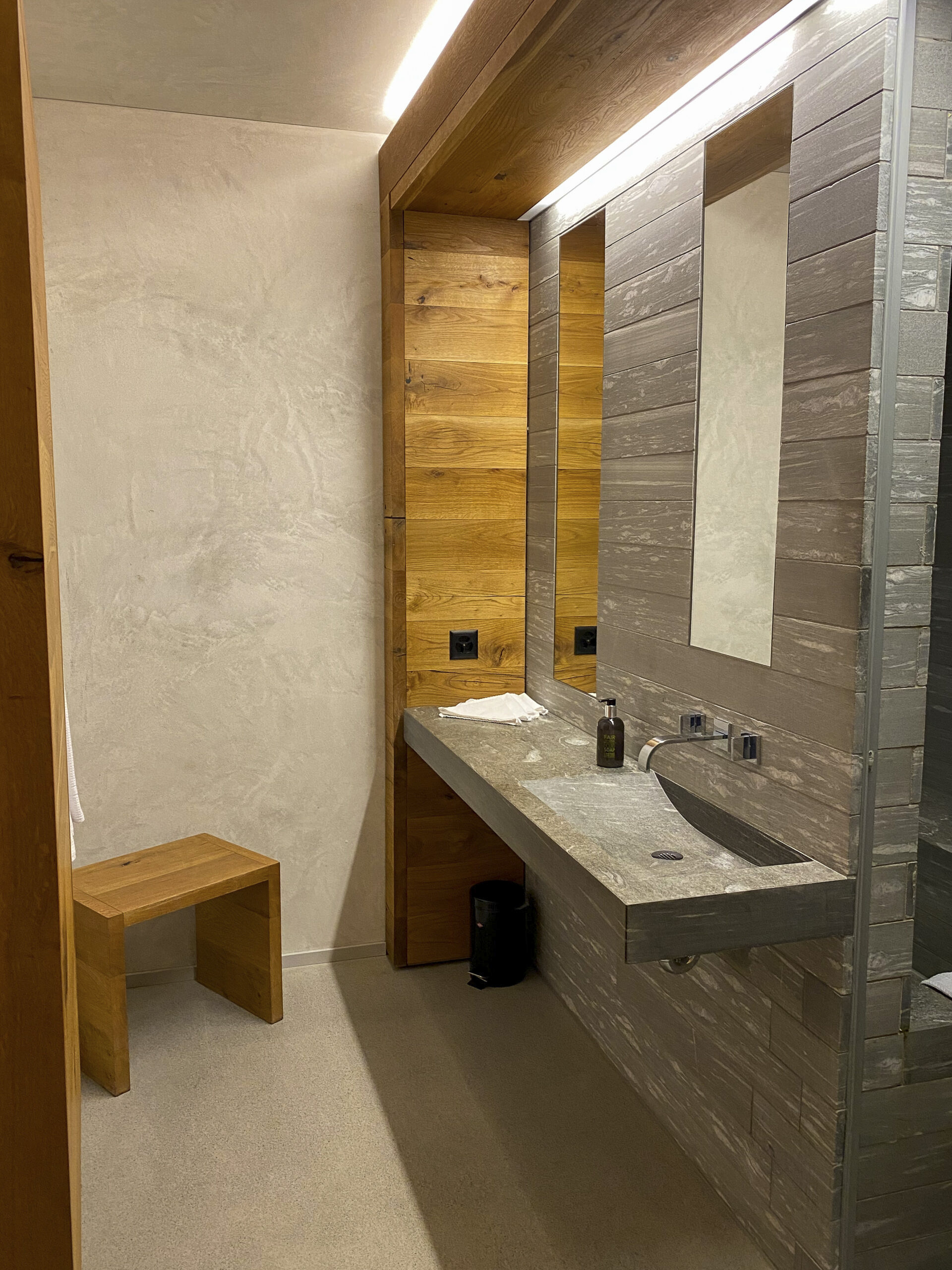 Grundsätzlich hat das Appartement genau die richtige Grösse. Einzig die Garderobe dürfte etwas grösser bemessen sein. In den Schlafzimmern finden sich grosse Einbauschränke, welche genügend Stauraum bieten. Vermisst haben wir in der Küche zudem eine Steckdose sowie Stauraum für Lebensmittel. Da die Oberschränke in der Küche ziemlich hoch angebracht sind, steht ein kleiner Hocker zur Verfügung. Mit meiner sehr bescheidenen Grösse von 158 cm waren die oberen Tablare der Oberschränke trotz Hocker leider unerreichbar. Die Wohnungen wie auch das Mobiliar sind aus hochwertigen Materialien (hauptsächlich Stein und Holz) und sehr modern gebaut/eingerichtet. Das Appartement empfanden wir als eher ringhörig. Vielleicht lag dies aber auch einfach an den lauten Nachbarn.