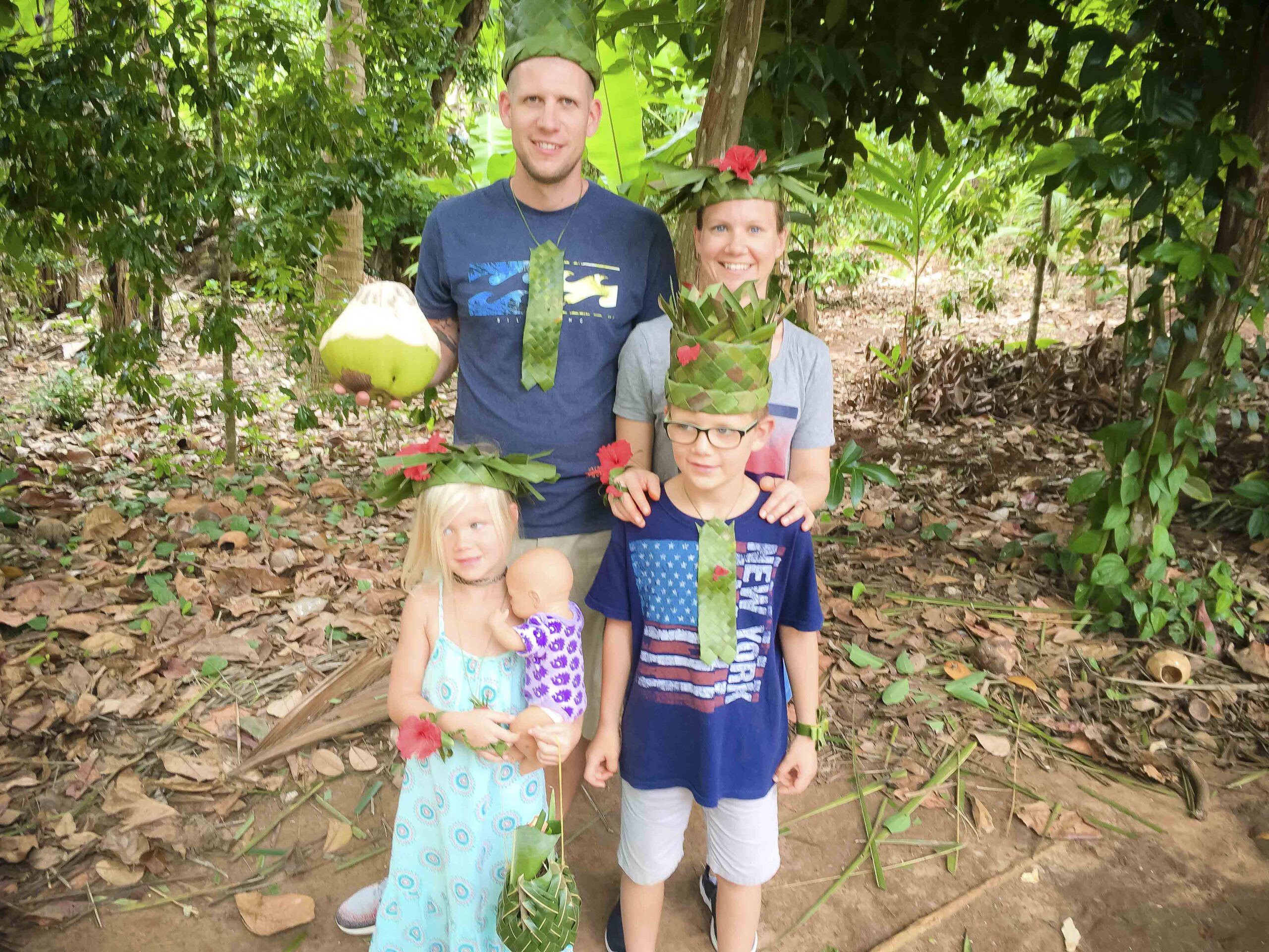 Unsere Gewürztour mit anschliessender Besichtigung von Stone Town (ältester Stadtteil von Zanzibar-Stadt) haben wir bei Colors of Zanzibar gebucht. Ein Guide hat uns während rund 2 Stunden durch den „Gewürz-Dschungel“ geführt und uns geduldig den Anbau, Gebrauch und vor allem die Heilwirkungen der verschiedenen Gewürze und Früchte erklärt, während sein Assistent fleissig Accessoires für uns geflochten hat.