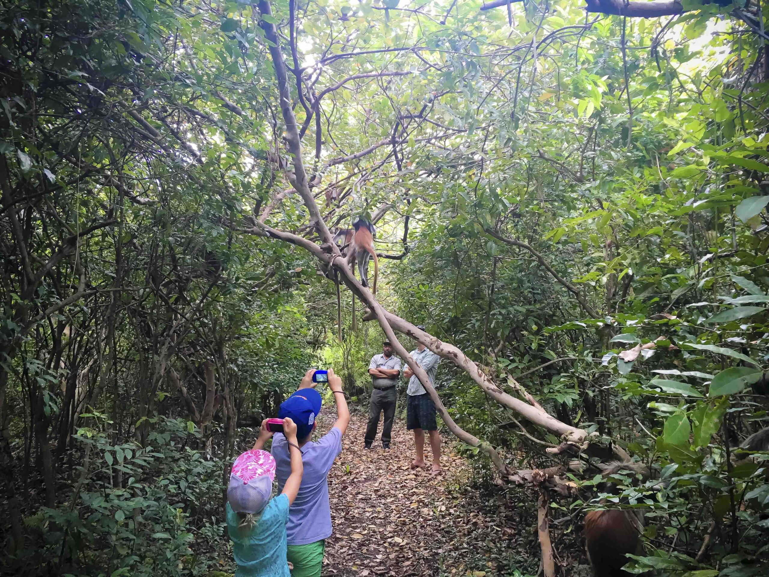 In einer kleinen Ausstellung beim Besucherzentrum am Eingang des Nationalparks lässt sich feststellen, dass der steigende Tourismus auch Schattenseiten hat. Insbesondere der übermässige Wasserverbrauch und der durch Hotels und Resorts entstehende Abfallberg, stellen ein grosses Problem dar. Die negativen Einflüsse sind aber auch während der Tour zu erkennen. In zum Teil riesigen Gruppen werden die Touristen durch den Wald geführt. Wir hatten Glück und wurden von einem Guide mit 30 jähriger Erfahrung allein und durch kleine Wege geführt. Als wir inmitten des Waldes standen und sich eine grosse Gruppe auf dem Hauptweg näherte, bat er uns, möglichst leise zu sein und stehen zu bleiben, da die Red Colobus Affen Lärm nicht mögen. Bereits nach kurzer Zeit waren wir von unzähligen Affen umgeben, die sich vor der lauten Touristengruppe versteckten. In aller Ruhe konnten wir die Affen beobachten und unzählige Fotos machen.