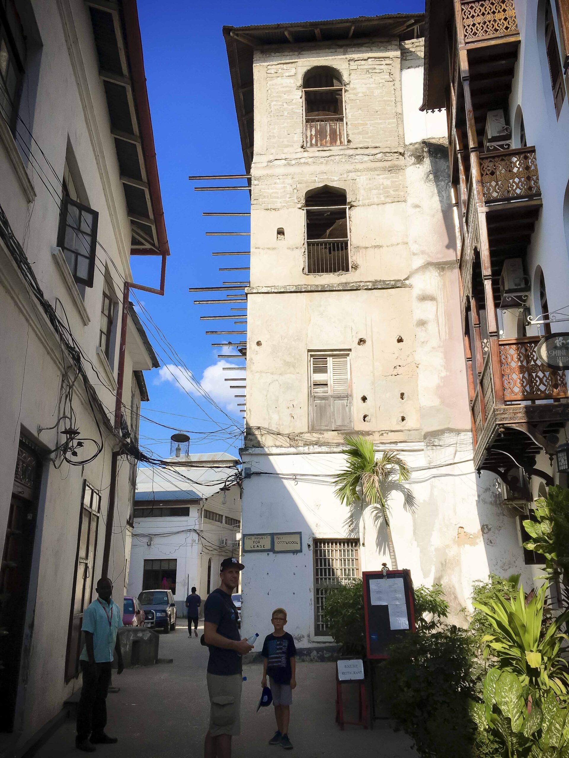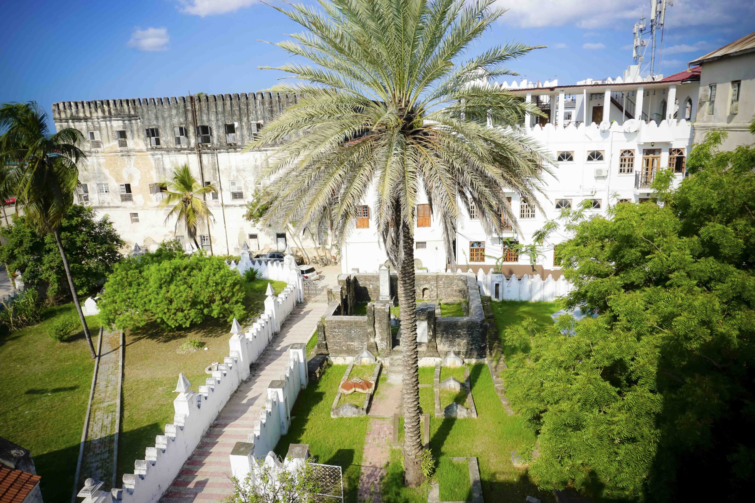 Nach dem traditionellen Reisgericht mit Fisch ging es weiter nach Stone Town, wo wir als erstes die Anglikanische Kirche besichtigt haben. Die Kirche steht auf dem ehemaligen Zentrum des Sklavenhandels und beheimatet ein kleines Museum zum Thema. Im Keller können ausserdem die Räumlichkeiten besichtigt werden, wo die Sklaven bis zur nächsten Auktion untergebracht wurden. Auf dem Weg zum Sultanpalast ging es durch enge Gassen und vorbei an den unterschiedlichsten Gebäuden, welche den Einfluss der indischen, arabischen und europäischen „Besetzer“ sowie der traditionellen swahilischen Bauweise widerspiegeln. Unterwegs liegt noch die Alte Festung (Ngome Kongwe), welche auf der ehemaligen Stätte einer portugiesischen Kirche erbaut wurde. Über die Jahre diente die Festung als Gefängnis, wo auch Exekutionen stattfanden, während der britischen Herrschaft wurde das Gelände als Tennisplatz für Damen genutzt. Heute dient sie als Kulturzentrum mit Essens- und Einkaufsmöglichkeiten. Ausserdem hat es eine kleine Bühne, wo regelmässig Veranstaltungen und Events stattfinden.