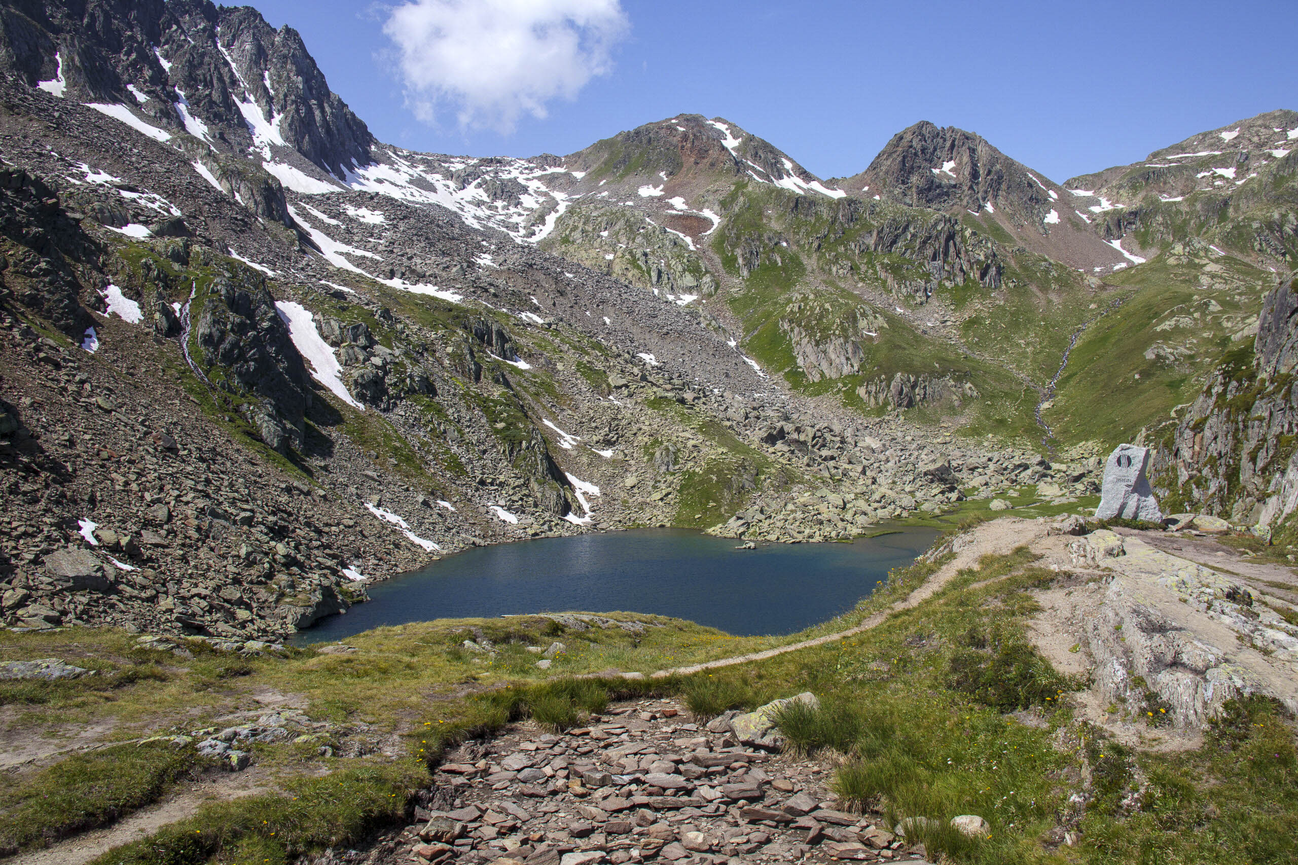 Für den nächsten Tag hatte Pascal eine kleine, gemütliche Rundwanderung zur Rheinquelle geplant. Bei sonnigem Wetter sind wir auf dem Parkplatz am Oberalppass gestartet. Leider hat der Mann sich nicht erkundigt, in welcher Richtung die Wanderung gestartet werden sollte. Nach zwei Stunden gemütlicher Wanderzeit und ein paar Höhenmetern hatten wir die Quelle dann auch erreicht. Nach einer eher ausgedehnten Mittagspause machten wir uns dann an die zweite Etappe.